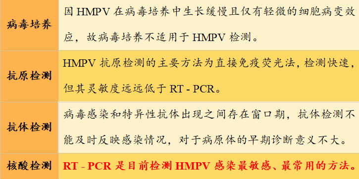 HMPV感染診斷技術(shù)包括病毒培養(yǎng)、核酸檢測(cè)、抗原檢測(cè)和血清學(xué)抗體檢測(cè)。